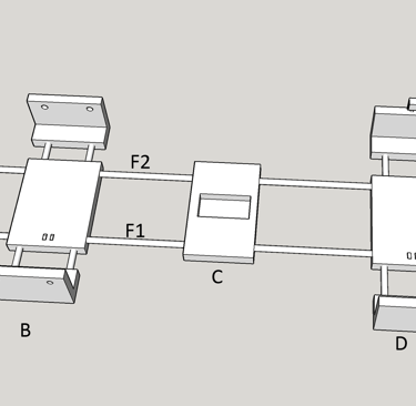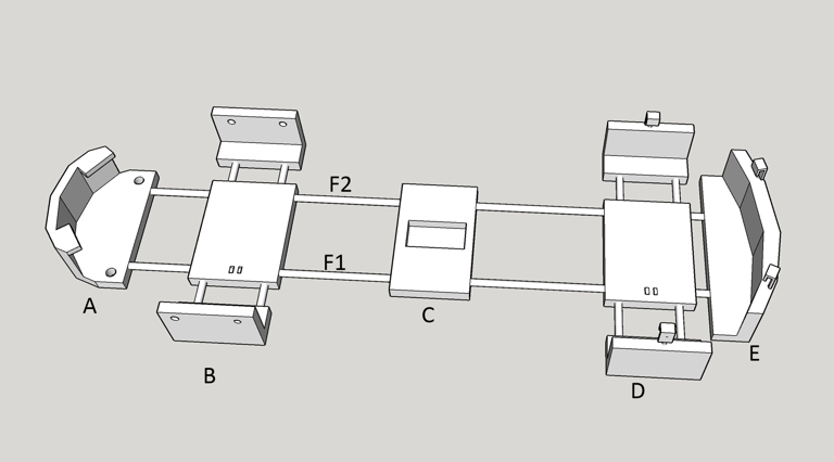 The locations of sections B, C and D can be adjusted (by sliding over F1 and F2), to make sure they are well positioned for getting the measurements.